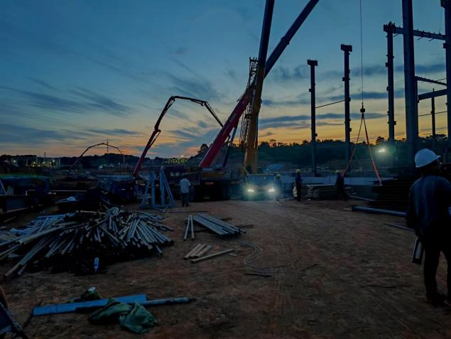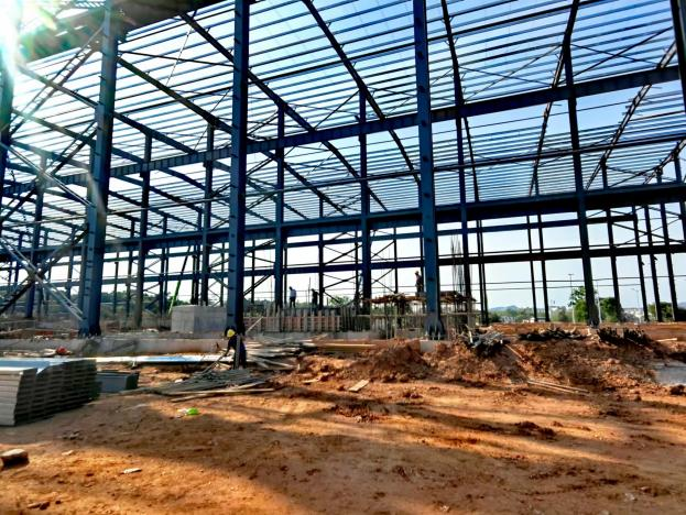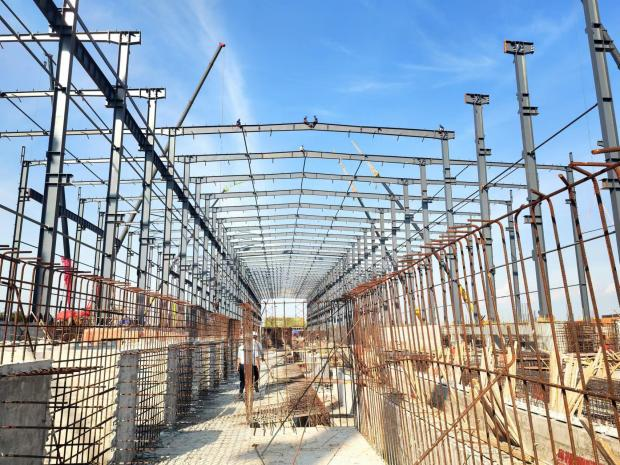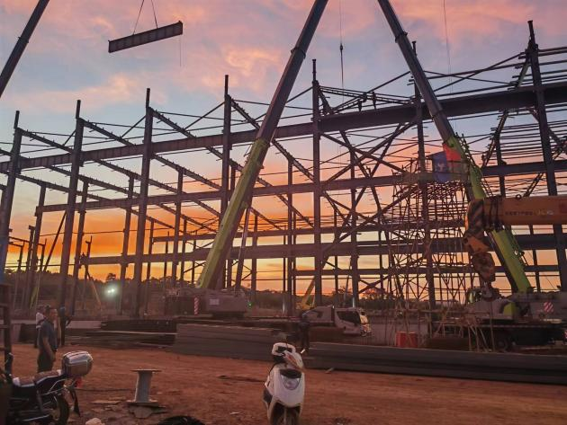 話不多說(shuō),先上圖,這是8月初的項(xiàng)目現(xiàn)場(chǎng),當(dāng)時(shí)還只有幾根“孤零零”的鋼結(jié)構(gòu)柱子立在現(xiàn)場(chǎng)↓↓↓