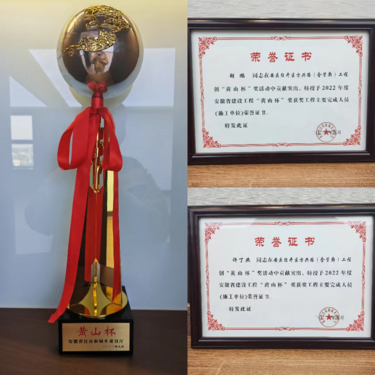 此外,升弘公司員工許丁照、胡鵬因在此次創(chuàng)獎活動中貢獻突出,被安徽省住房和城鄉(xiāng)建設廳特授予2022年度安徽省建設工程“黃山杯”獎獲獎工程主要完成人員(施工單位)榮譽證書。