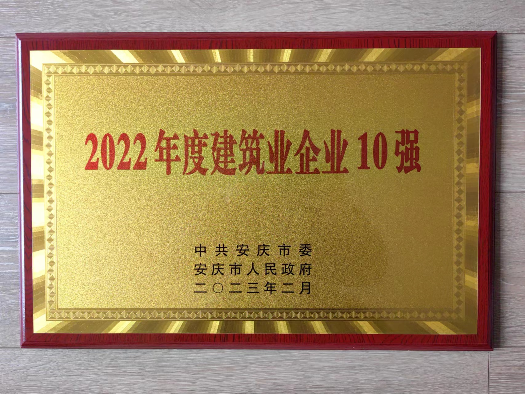 我公司榮獲安慶市“2022年度建筑業(yè)企業(yè)10強”榮譽稱號