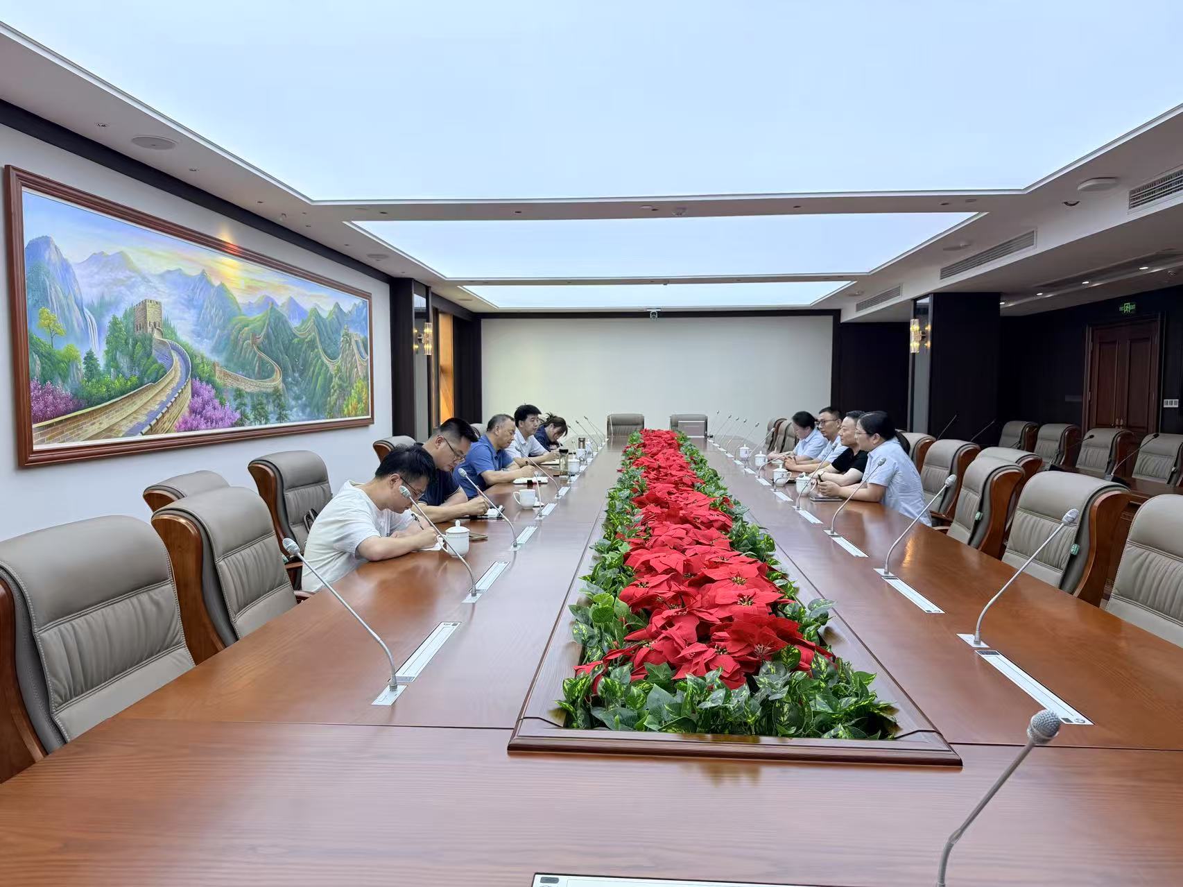 座談會上,朱仲飛總經理向領導匯報了公司近年來的經營狀況、未來戰略規劃及當前面臨的挑戰。政府領導充分肯定了公司為大觀區作出的貢獻,并強調:政府將持續優化營商環境,支持企業產業創新,希望安徽天墅建設集團有限公司把握政策機遇,進一步做強產業鏈,為高質量發展注入新動能。