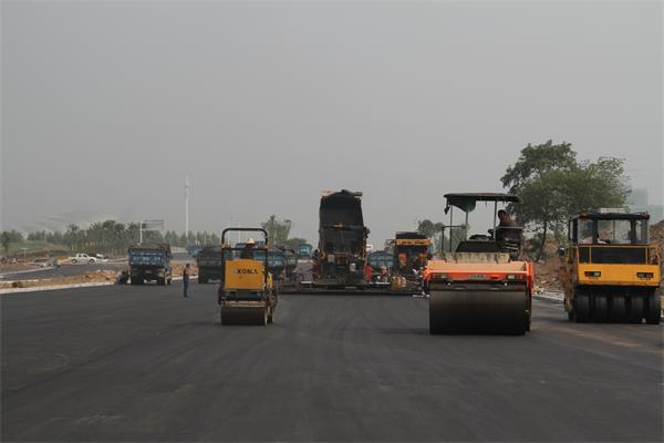 29日下午,施工現(xiàn)場一片忙碌,幾十名工人正在道路北段西側(cè)以及振風(fēng)大道交叉口處攤鋪最后一層瀝青。瀝青攤鋪機鋪設(shè)瀝青,運輸車來來往往,膠輪壓路機、鋼輪壓路機跟進進行初壓、復(fù)壓,將剛鋪設(shè)的瀝青壓平壓實。攤鋪作業(yè)一直持續(xù)到晚上八點,隨著振風(fēng)大道交叉路口的面層瀝青攤鋪結(jié)束,歷時近半月的瀝青攤鋪施工順利完成。