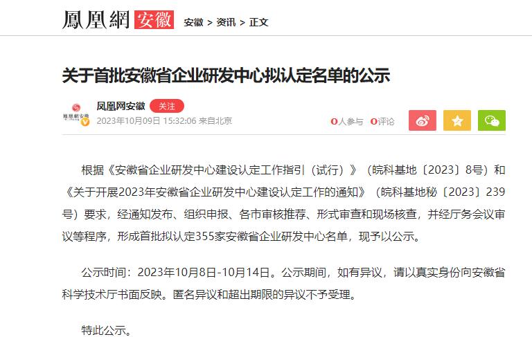 根據《安徽省企業研發中心建設認定工作指引(試行)》(皖科基地〔2023〕8號)和《關于開展2023年安徽省企業研發中心建設認定工作的通知》(皖科基地秘〔2023〕239號)要求,經通知發布、組織申報、各市審核推薦、形式審查和現場核查,并經廳務會議審議等程序,形成首批擬認定355家安徽省企業研發中心名單,其中安徽天墅集團成功入選,值得一提的是安慶市本次入選企業僅有17家。