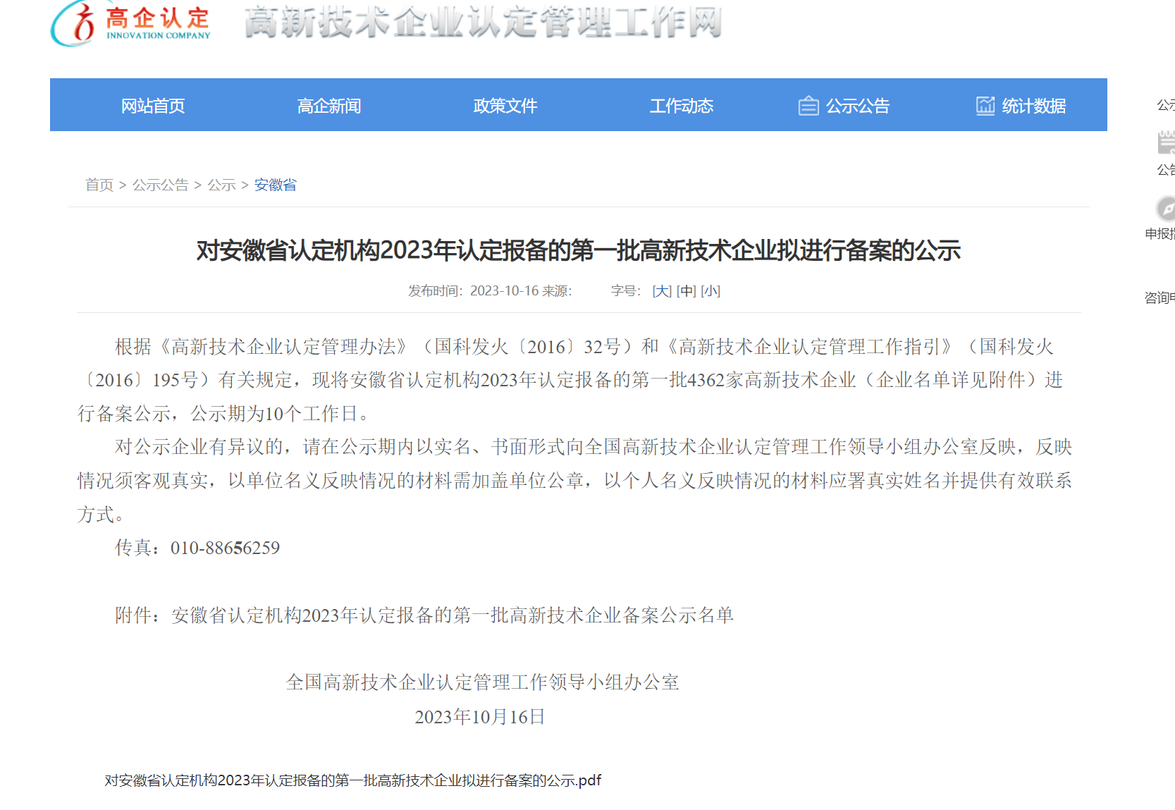 根據《高新技術企業認定管理辦法》 (國科發火 (2016)32號) 和《高新技術企業認定管理工作指引》 (國科發火(2016)195號)有關規定,安徽省認定機構2023年認定報備的第一批4362家高新技術企業名單已經出爐,安徽天墅建設集團成功入選。