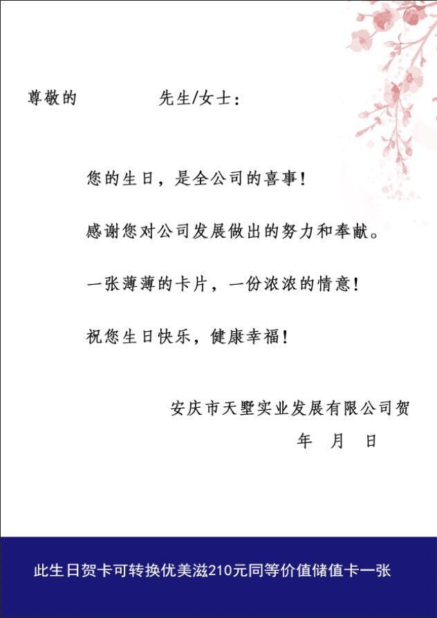 三、除生日蛋糕外,生日當(dāng)天,另贈送男員工高檔香煙,贈送女員工鮮花以表祝賀。
